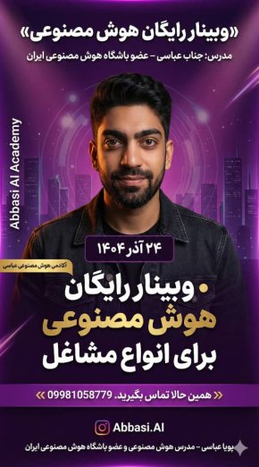 نام و نام خانوادگی: پویا عباسی 🎓 تحصیلات: کاردانی فناوری اطلاعات (IT)، دانشگاه شیراز 👨🏫 سوابق تدریس: مدرس فعال هوش مصنوعی (در حال حاضر مشغول تدریس) بیش از ۱ سال سابقه تدریس تخصصی در حوزه هوش مصنوعی برگزاری کارگاههای تولید محتوا با هوش مصنوعی برای عموم و کسبوکارها طراحی و اجرای سمینارها و دورههای آموزشی در حوزه فناوری و AI پروژههای عملی تدریس شده: • تحلیل داده با پایتون و هوش مصنوعی • پیادهسازی مدلهای هوش مصنوعی برای کسبوکارها 🛠 مهارتها: هوش مصنوعی و یادگیری ماشین مهندسی پرامپت (Prompt Engineering) تولید محتوا با ابزارهای هوش مصنوعی برنامهنویسی پایتون و کتابخانههای مرتبط با AI طراحی و اجرای کارگاههای آموزشی توانایی سادهسازی مفاهیم پیچیده برای هنرجویان 📜 گواهینامهها: دوره مهندسی پرامپتنویسی – دانشگاه هاروارد مدرک رسمی هوش مصنوعی از وزارت علوم 🤝 عضویت باشگاه هوش مصنوعی ایران